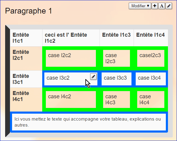 Pour des tableaux plus évolués, il est peut-être préférable d'utiliser un tableur extérieur (Open Office(gratuit) ou Microsoft Office) puis de coller l'image dans votre paragraphe.