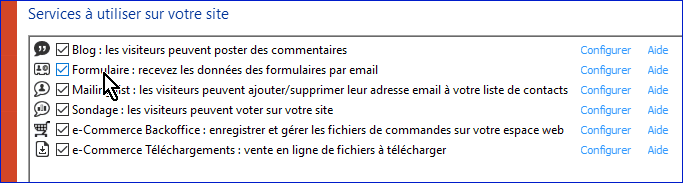 Les options du formulaire