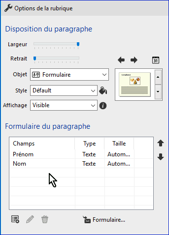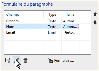 En sélectionnant un champ et après avoir cliqué sur le crayon, vous pouvez le modifier.