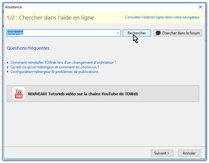 Vous avez cette fenêtre qui s'affiche. Tapez quelques lettres puis cliquez sur Rechercher.