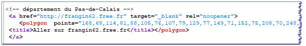 Avant d'utiliser le logiciel précédent, il vous faudra créer un champ HTML contenant ce petit scrip mais qui risque vite de devenir grand suivant votre utilisation. Il y a des indications entre <!-- et --> pour vous aider à ajouter ou modifier vos données en fonction de votre image.