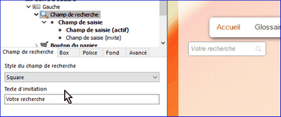 Vous pouvez modifier les dimensions, le style des différents champs dans le Thème et le mode de recherche dans les Options.