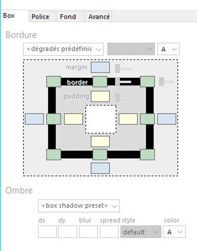 Il est possible de modifier beaucoup de valeurs mais certaines sont à manipuler avec précaution car des valeurs mal appropriées peuvent avoir des conséquences inattendues sur la présentation du site. Pour cela il est conseillé de modifier une valeur à la fois au début, les changements ne se voient parfois qu'au retour dans "Rubriques" (ex le fond de " . Conteneur ").