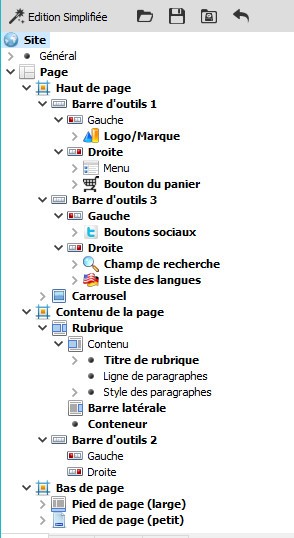Le menu peut-être différent suivant le thème choisi mais on y retrouve les mêmes éléments. Il est possible que certains sites ont le haut et/ou le bas de page vides.