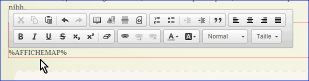 Dans un paragraphe, vous ajoutez le nom du script en majuscules et entre %__%, ex %AFFICHEMAP%, c'est la méthode la plus rapide.