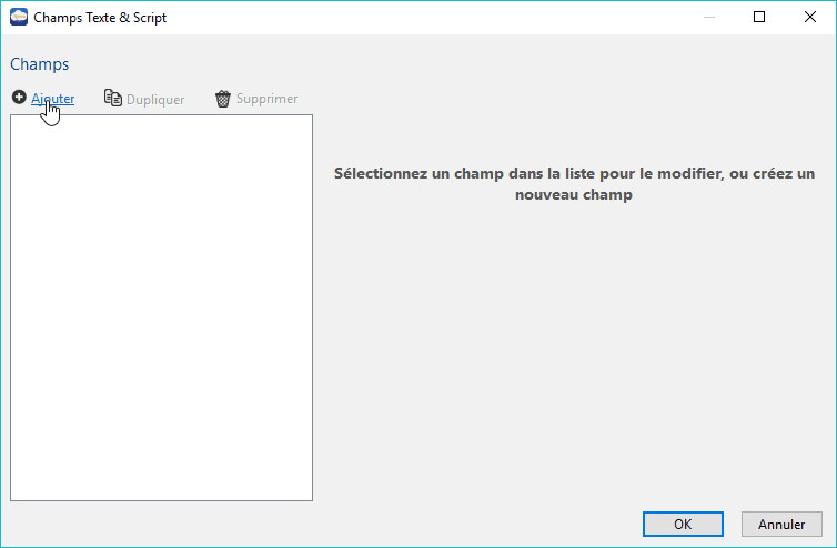Lors d'une première ouverture de la page, vous aurez ce formulaire vierge. Comme il n'y a rien, nous allons forcément "créer un nouveau champ" par "Ajouter".