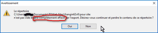 Si TOWeb propose le chemin du site en cours, attention à ceci.