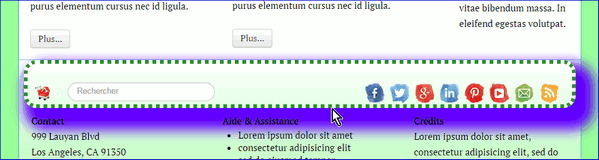 Comment encadrer le titre des rubriques. Dans "Thème", cliquez sur le titre de la rubrique, puis dans la "Box" il suffit de mettre des valeurs dans 'border', choisir le style de ligne comme ici 'solid', et si vous voulez réduire en largeur, mettez une valeur en 'margin', l'exemple vous donne ceci.