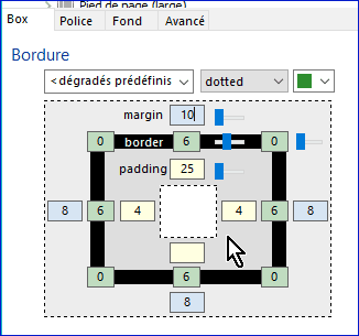 Les réglages que vous effectuez dans la Box, comme dans les autres onglets d'ailleurs, seront pour tous les éléments identiques de toutes vos rubriques.