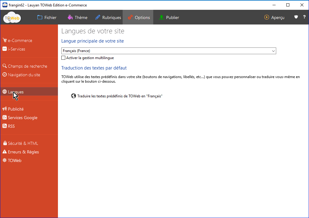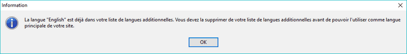 Si la nouvelle langue choisie n'est pas dans votre liste, il n'y aura pas de problème pour la déclarer en langue principale, vous devrez seulement effectuer la traduction si elle n'est pas gérée par TOWeb.