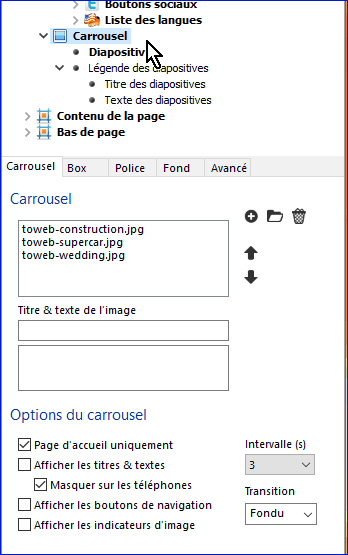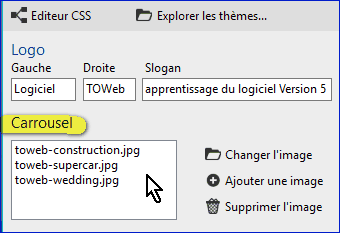 Le carrousel dans l'éditeur CSS