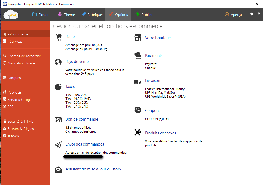 Les coordonnées de votre boutique qui apparaîtront sur les bons de commandes.