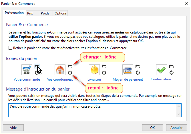 Vous pouvez faire afficher ou non un message lorsque le client clique sur "Ajouter". Cela confirme que l'action a été effectuée en plus de l'incrémentation du petit panier.