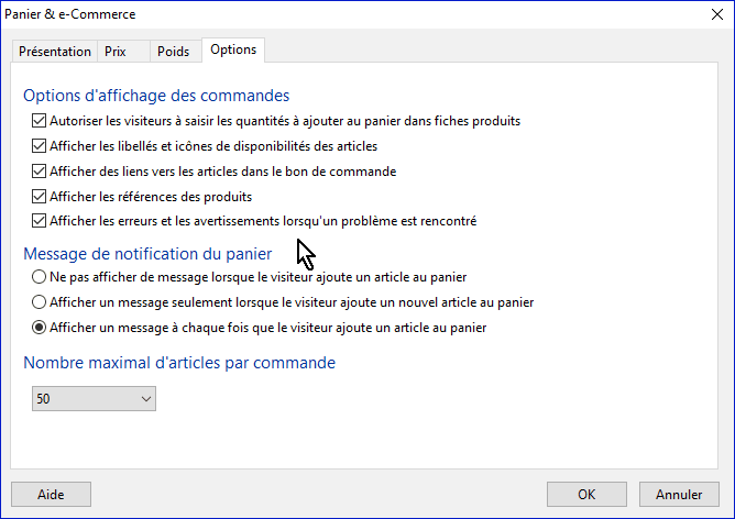 Vous pouvez limiter le nombre d'articles que peut sélectionner le client lors d'une même commande.