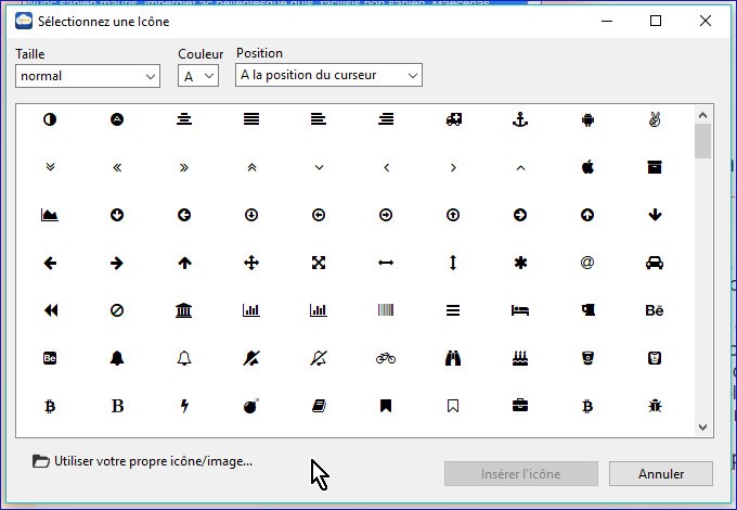 Cliquez sur l'icône "Insérer/Editer une icône", vous obtenez cette fenêtre.
