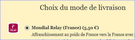 Le transporteur Mondial Relay n'est pas dans la liste des préprogrammés, vous devez donc l'ajouter dans Options/e-Commerce/Livraison ---> ajouter un mode de livraison (éventuellement voir la rubrique)
