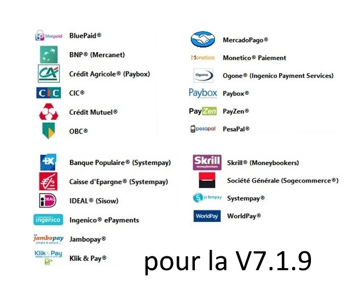 Si votre moyen n'est pas dans la liste, procurez-vous le script de votre banque ou centre de paiement. Ajoutez ce mode, puis vous insérerez ce script dans la fenêtre prévue à cet effet.