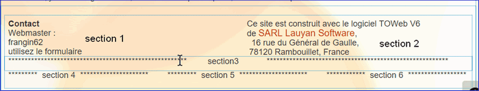Le pied de page petit peut compter 3 sections sur une seule ligne et occupe toute la largeur de la page, donc la largeur de chaque section dépend de leur nombre.