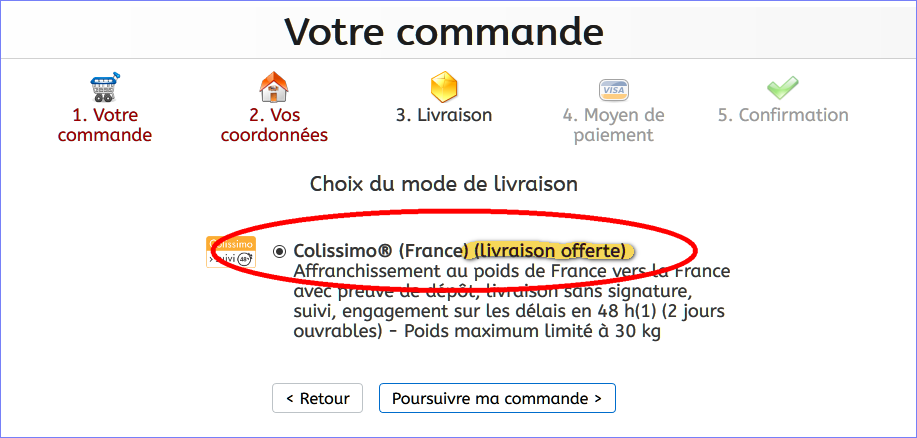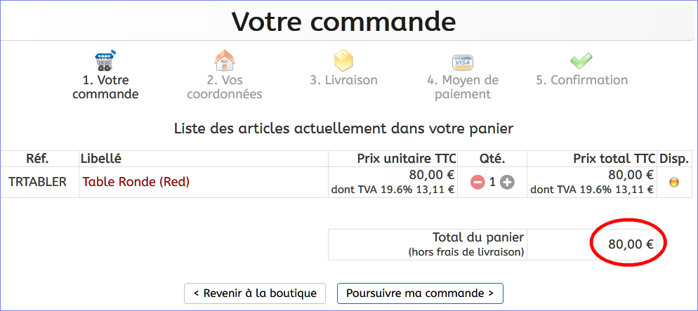 Vous décidez d'offrir les frais de port à vos clients à partir d'une certaine valeur du total de la commande.