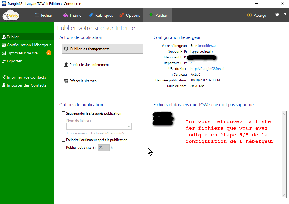 Cochez la case 'SFTP/FTP/FTPS beta. Dans ce cas il n'y a plus de fichiers et dossiers que TOWeb ne doit pas effacer. TOWeb ne remplace ou supprime que ses propres dossiers/fichiers.
