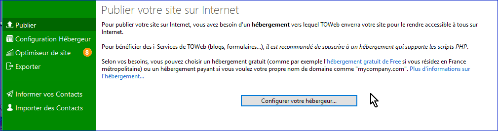 Vous devez bien sûr lui indiquer où vous voulez déposer votre travail. Donc pour cela, direction "Configurer votre Hébergeur... "