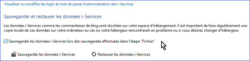Vous retrouverez les fichiers sauvegardés dans ....\Documents\TOWeb Sites\nom de votre site\Design\_iserv puis dans \blog\data pour les commentaires, sous la forme de 2 fichiers (.txt et .xml) ou dans \twsc\data pour les commandes sous 2 fichiers également (.txt et .html).