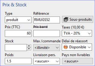 Rubriques/Catalogue de produits/Prix & Stock