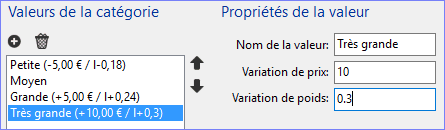 Une fois les valeurs définies dans chaque catégorie, il est possible de modifier les informations, notamment la quantité de chaque sous-produit (facilite la mise à jour automatique)