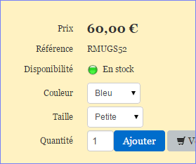 Ce que cela donne sur le web, le client peut choisir le produit en fonction de la taille.