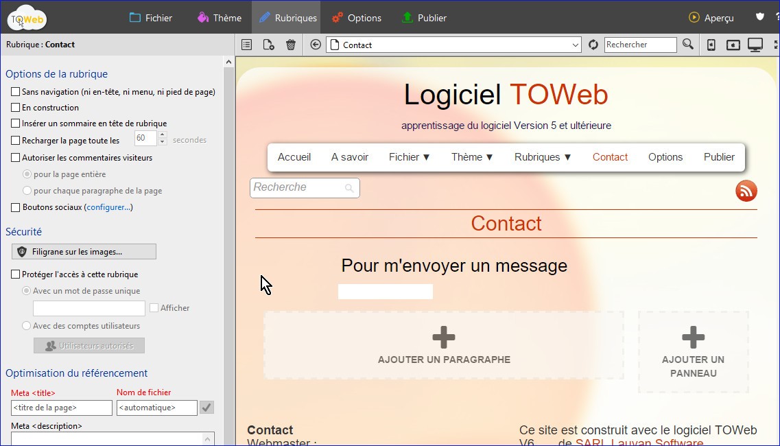 Lorsque vous cliquez sur "Thème", votre rubrique va se modifier quelque peu.