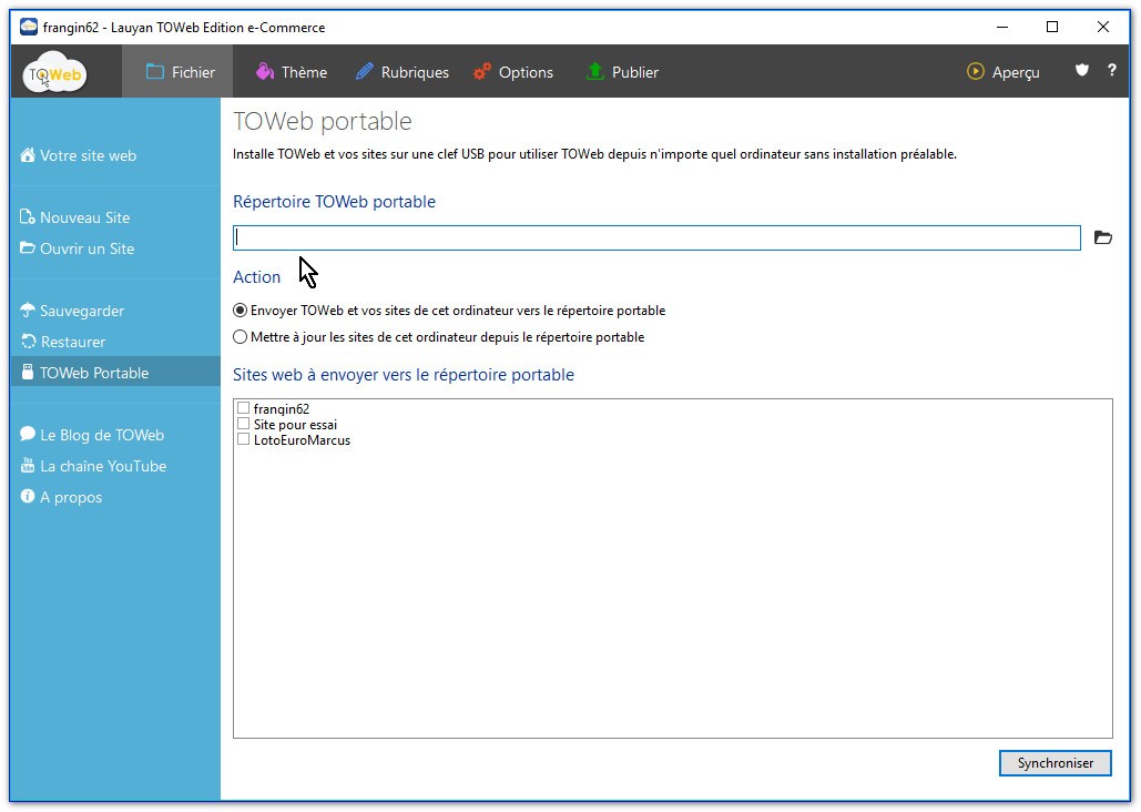 Vous indiquez le chemin de votre clé, vous sélectionnez le ou les sites que vous voulez emporter.